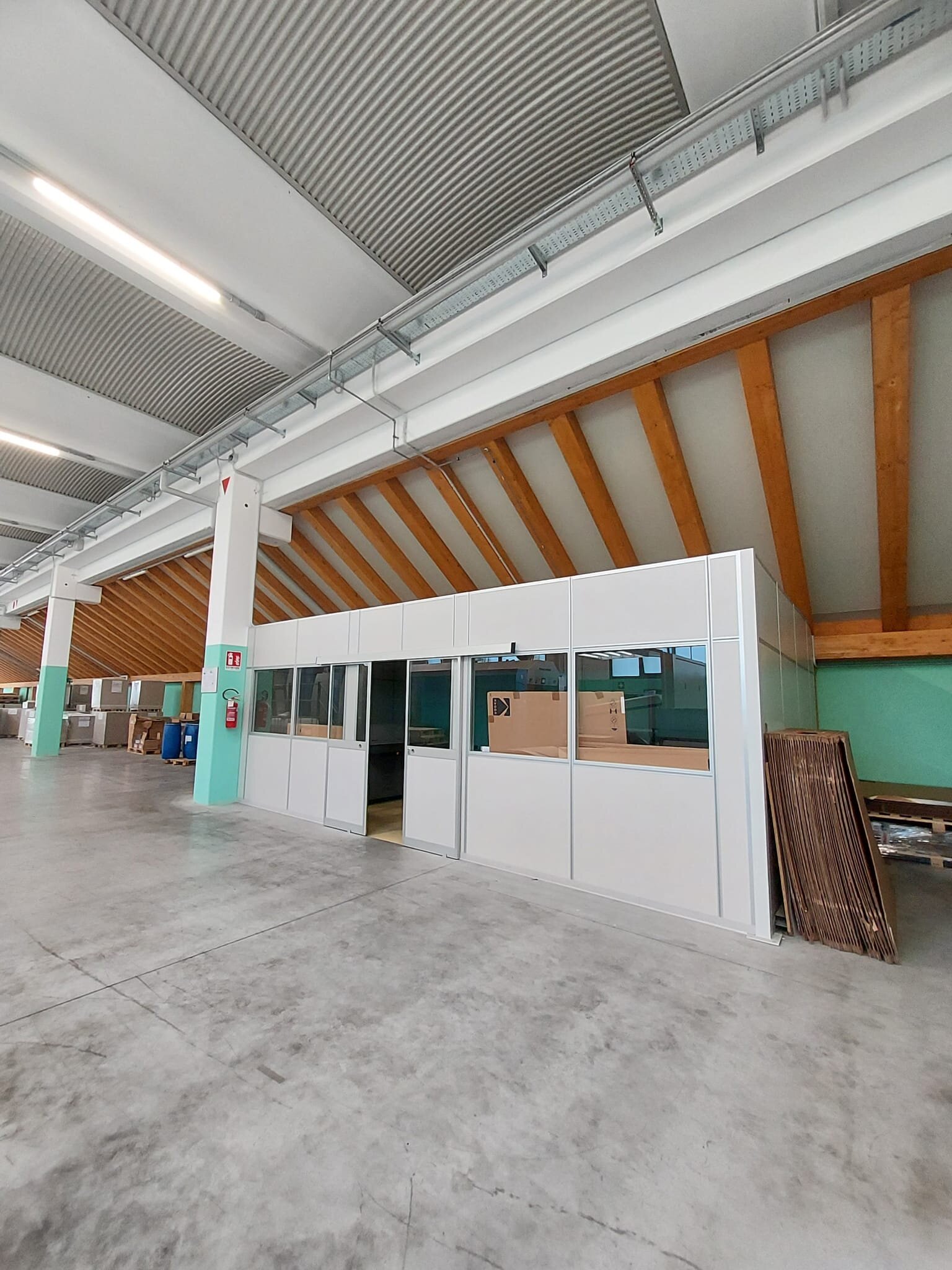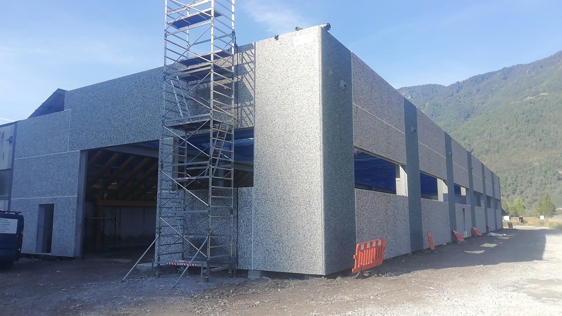 - edificio realizzato con elementi prefabbricati con finitura esterna simile al fabbricato gia esistente;