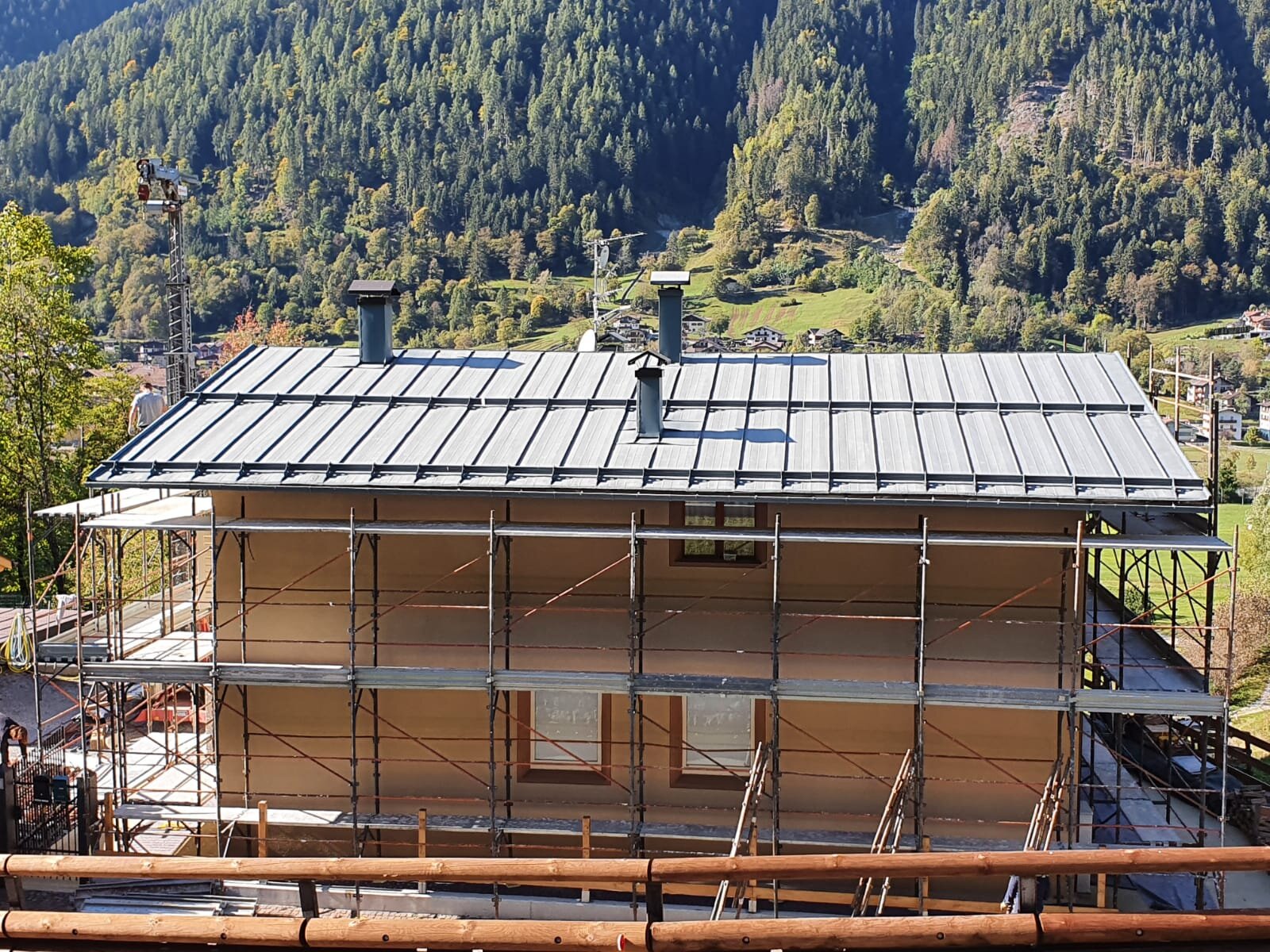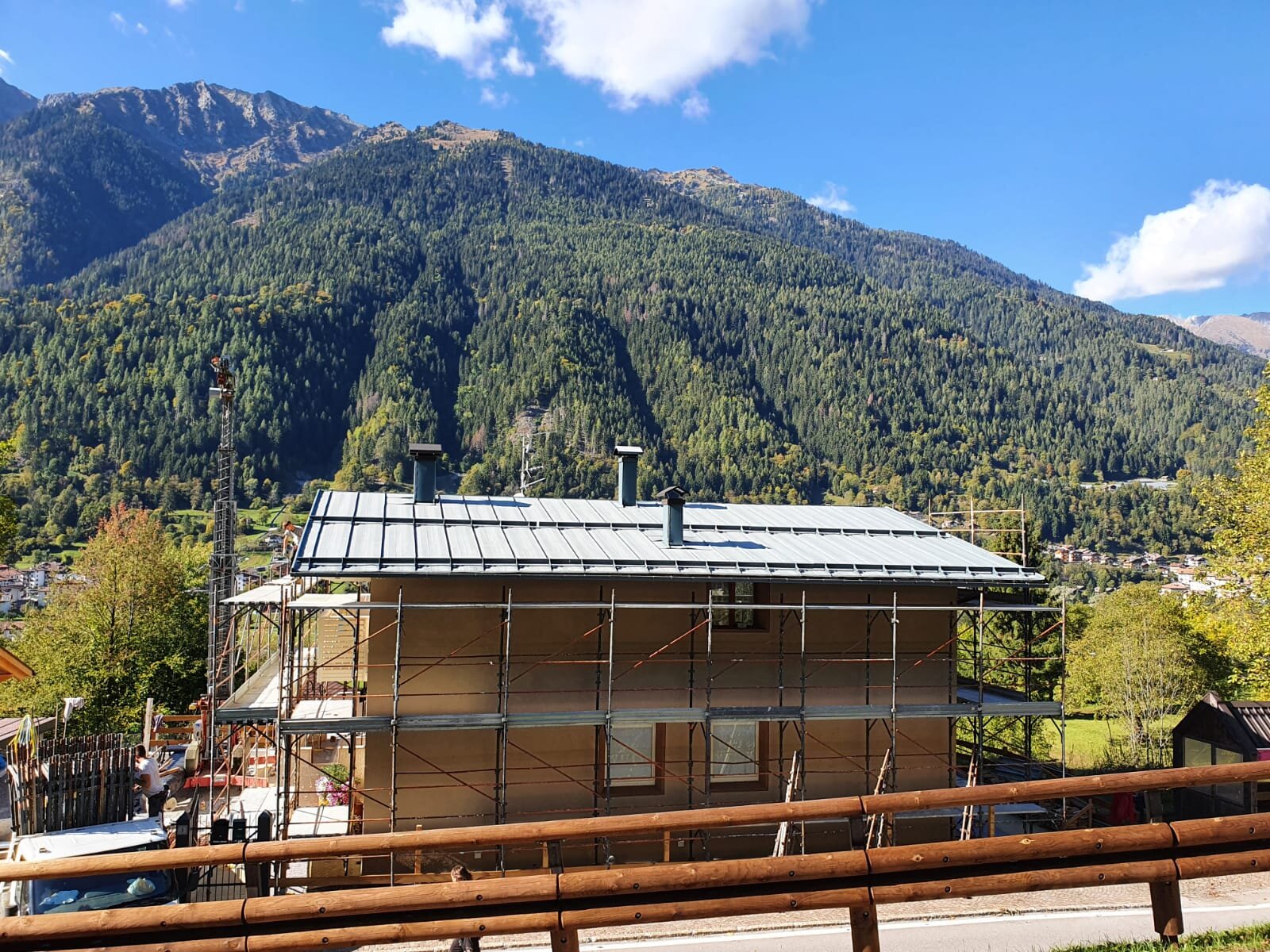- rifacimento del manto di copertura con la posa di isolamento e successiva installazione di nuova lamiera a copertura anche dei legni di gronda;