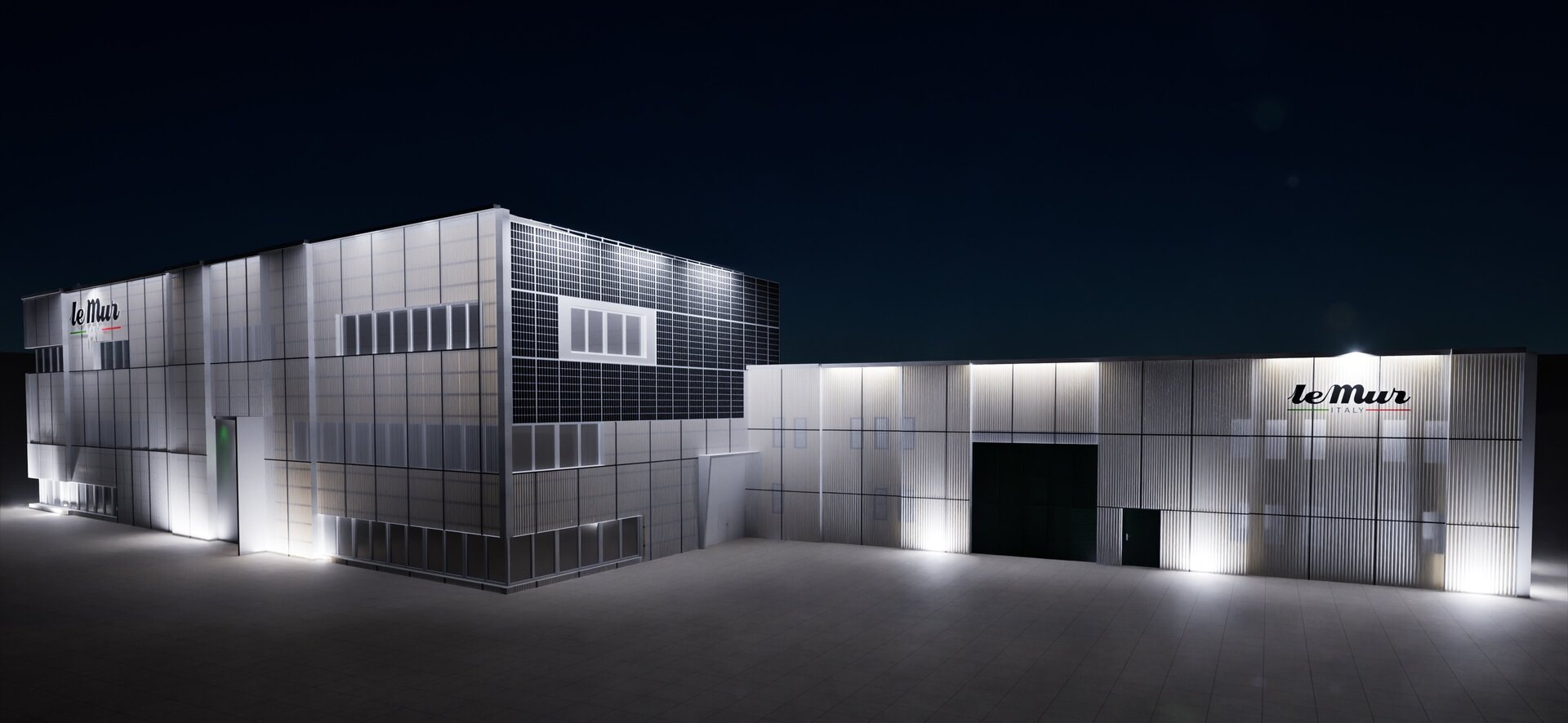 Progetto di riqualificazione archichettonica ed energetica presso complesso produttivo Lemur Srl di Ala composto da facciate ventilate con impianto fotovoltaico integrato.